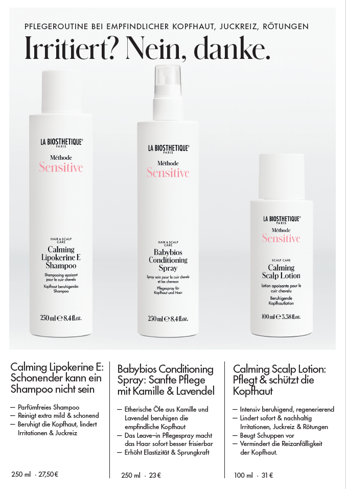 Innerer und äußerer Stress können die Kopfhaut aus der Balance bringen. Sie reagiert gereizt, spannt, juckt oder bildet sogar ausgeprägte Schuppen. Hier kommt der sanfte Superheld der Méthode Sensitive ins Spiel: Hafer steht im Mittelpunkt des Wirkkonzepts. Die beruhigenden, regenerierenden und Feuchtigkeit spendenden Eigenschaften des Hafers normalisieren sofort und nachhaltig die Funktionen einer überreagierenden, empfindlichen Kopfhaut.
